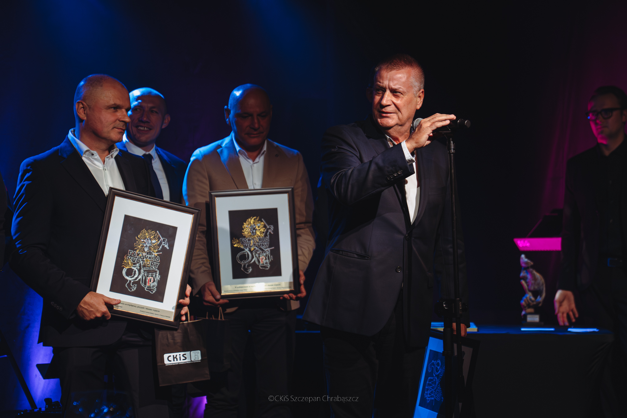 Nie zabrakło również podziękowań dla Adama Orzechowskiego, Dyrektora Teatru Wybrzeże, oraz aktorów: Małgorzaty Oracz, Piotra Łukawskiego i Marka Tyndy – za wieloletnią współpracę z pruszczańską sceną teatralną Faktoria Kultury.